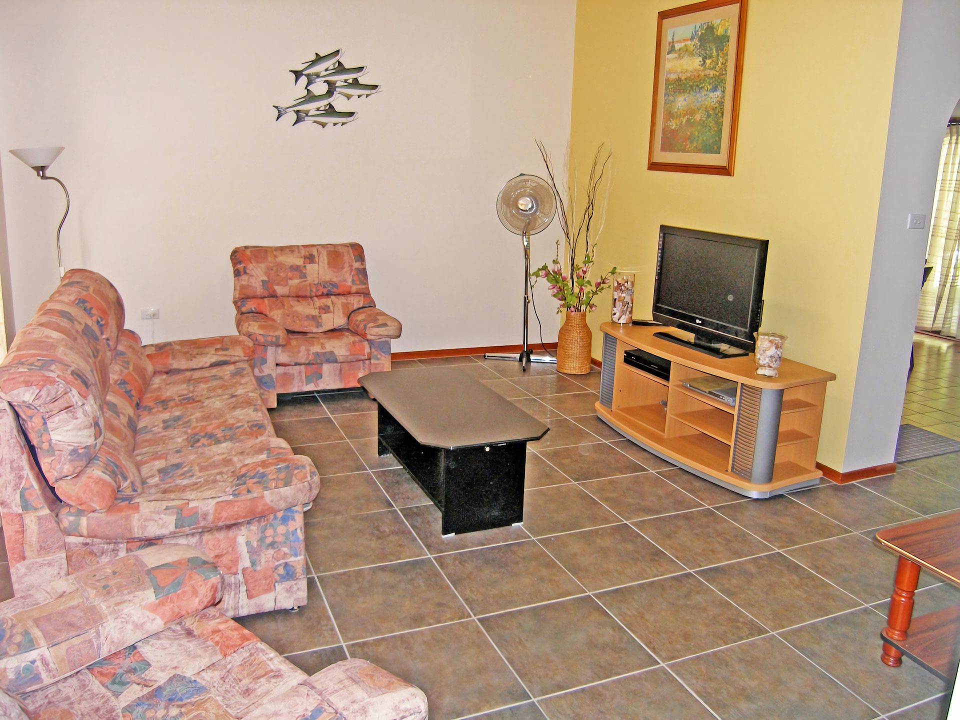 • Flat screen TV, DVD, fan, heater